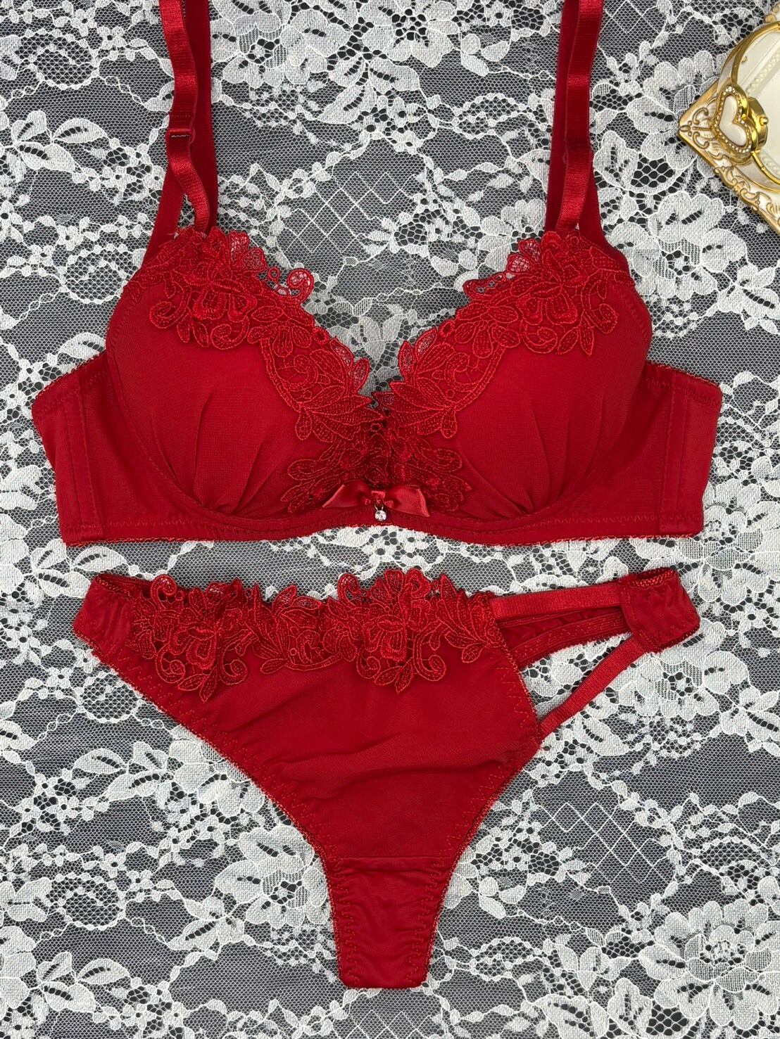 豪華ケミカルレースが目を惹くブラショーツ・Tバック3点セット