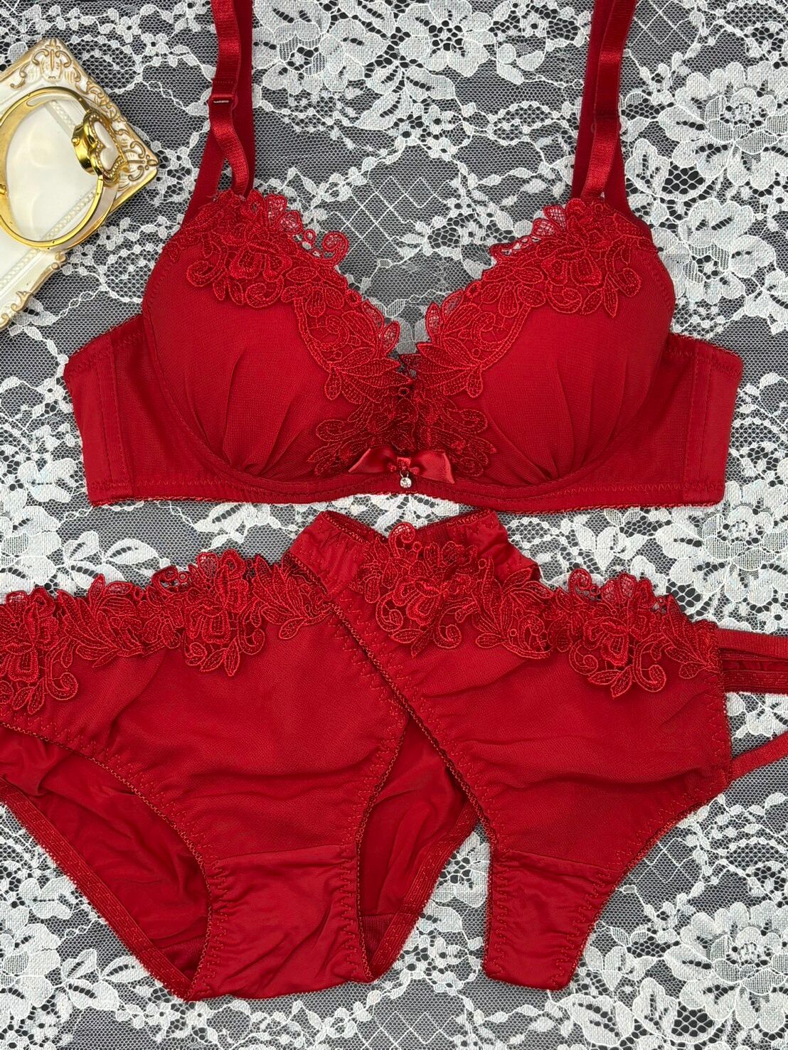 シフォンケミカル3点セットブラ[サイズ:B65~D75/E65~F75][レッド・ホワイト]5012