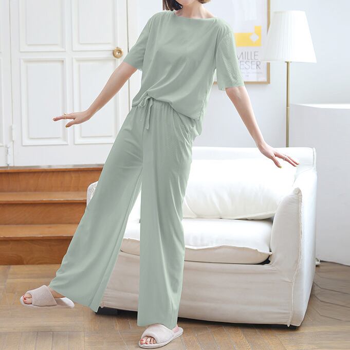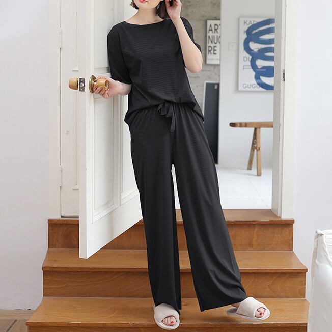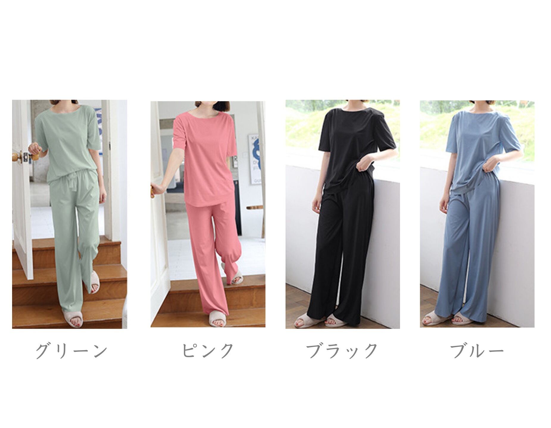 ルームウェア 涼しい、肌触りサラサラ ロングパンツ2点セット [フリーサイズ] No.7002